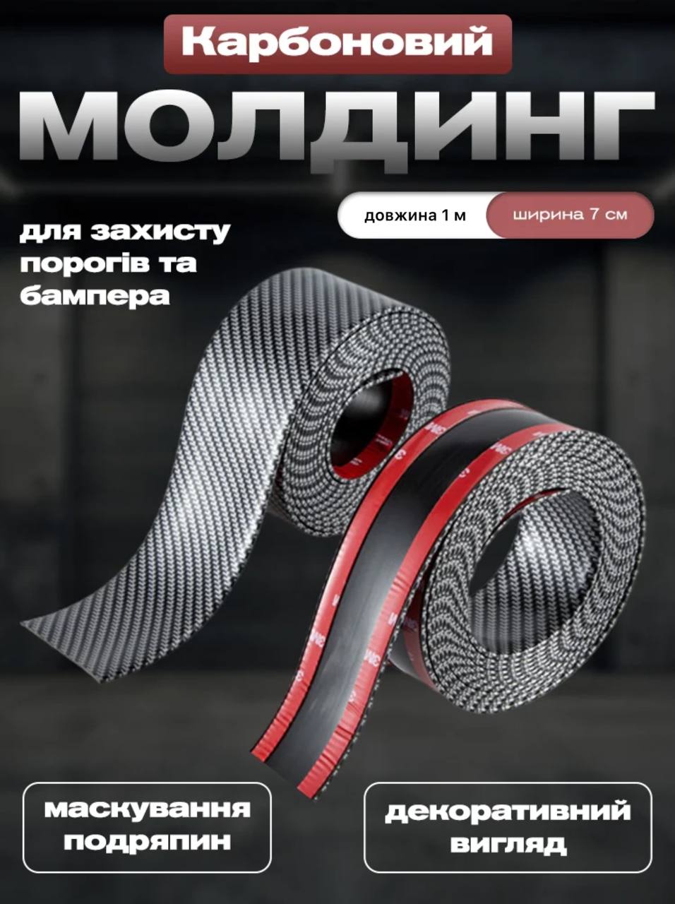 Стрічка імітує виглядкарбону — матеріалу, що є популярним для декорування кузова транспортних засобів різного типу. Чорно-сіра палітра підійде для автівки з будь-яким кольором кузова